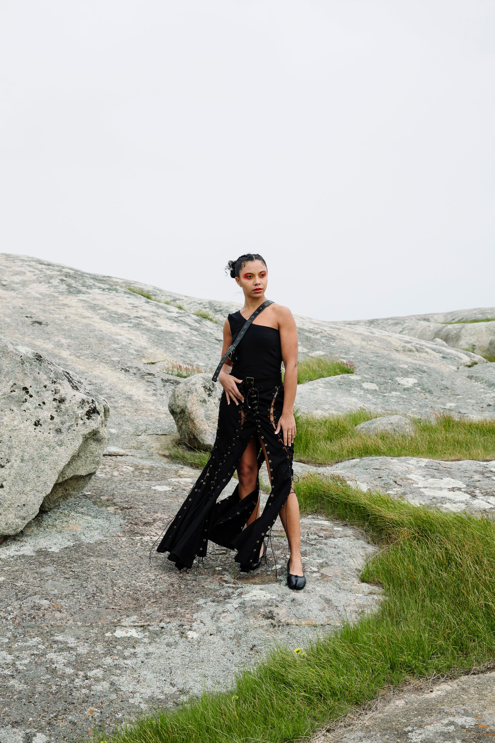 Fit | High Waisted, Bell Bottom Flare, Elastic ties through eyelets | Converts from Skirt to Pants with ties