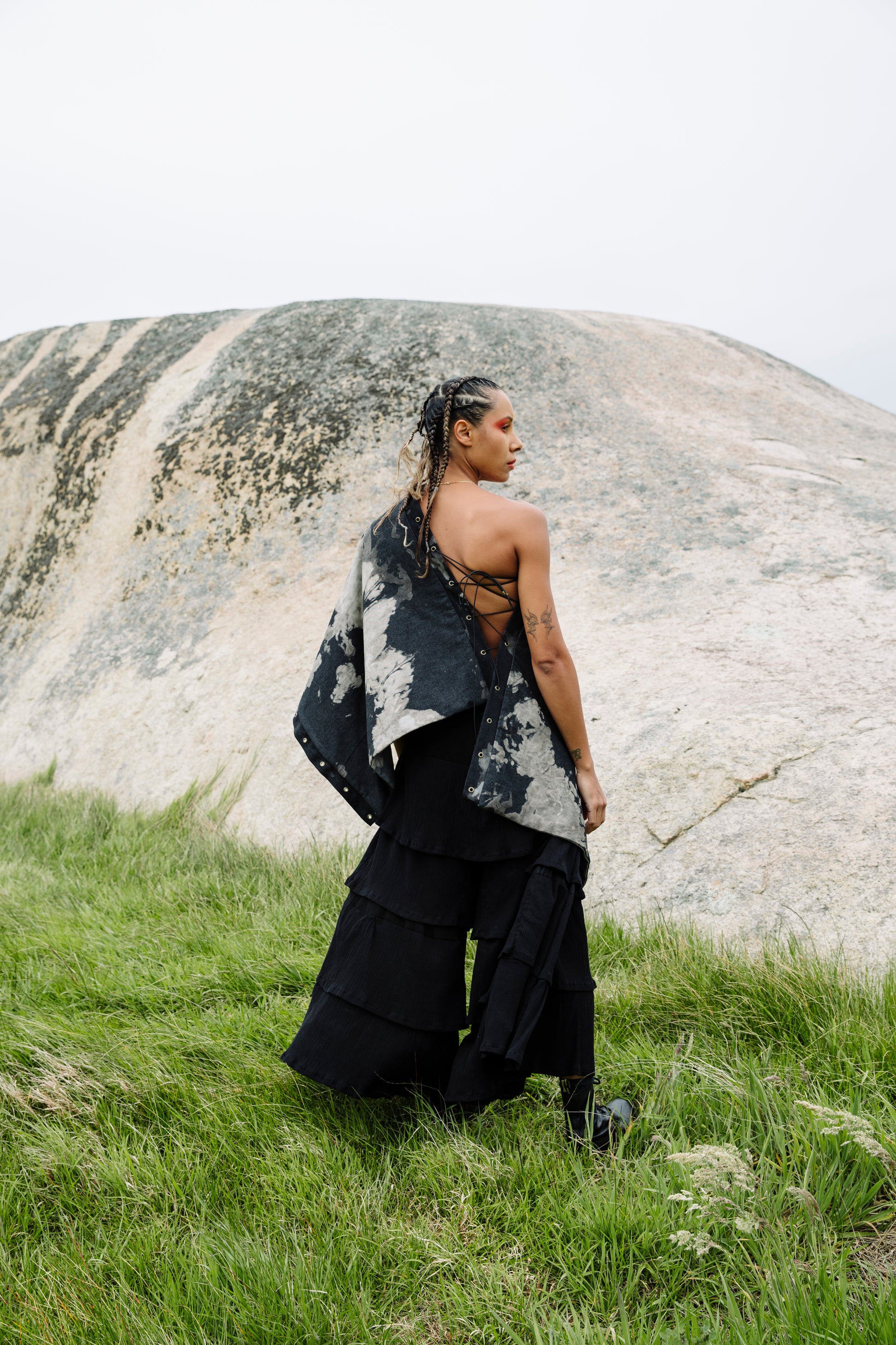 Fit | Modular extension scarf with eyelets able to attach to Modular Coats, worn as scarf, or tied as wrap top (as shown). Tying elastic included with purchase.
